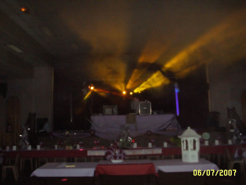 La fumée donne un superbe effet avec les lights, car on peut distingué les faisceaux lumineux comme sur cette photo (la machine a fumée etais placé sur le pont au même niveau que les light car trop bas les gens fuit le dancefloor [ça donne un effet d'etouffement d'après les invité])