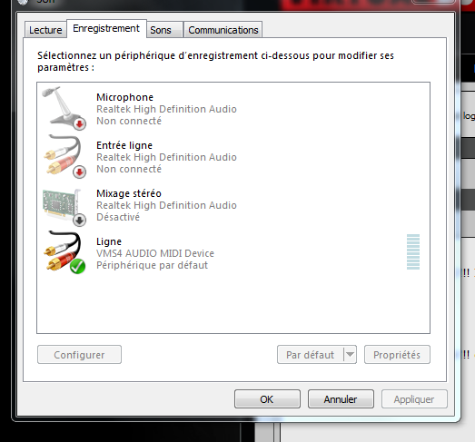 car pour pouvoir enregistrer a partir d'un mixer externe , il faut obligatoirement l'option Record Loopback .