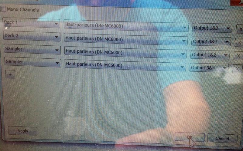 Dans ADVANCED CONFIG j'ai assignez les sorties 1 et 2 pour le deck 1 et 3 et 4 pour le deck 2 avec la carte son denon dn mc6000