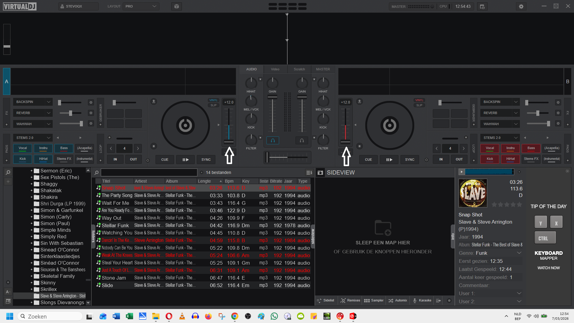 Ik heb net verschillende versies geprobeerd en deze fout komt telkens weer tevoorschijn. In het voorbeeld heb ik de meest recente versie b9209 opgestart en de pitch gaat automatisch naar +12%. De fader op mijn Denon MC-3000 staan beiden in het midden. Ik kan de snelheid aanpassen op het scherm maar niet met de controller. Telkens ik de pitchfader aanraak gaat die terug naar de +12% positie in de software.