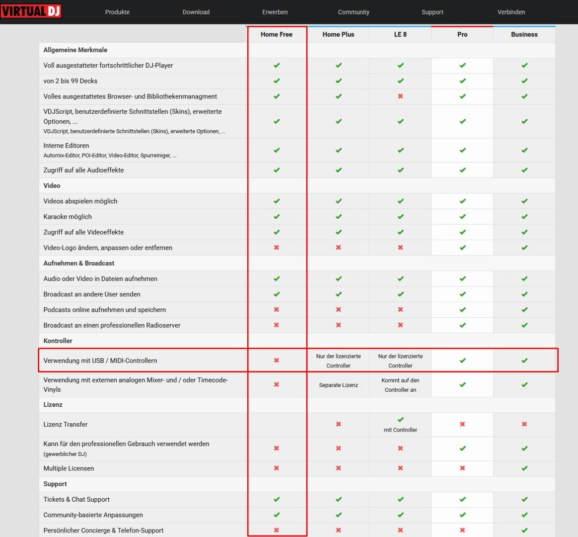 Siehe Comparison : https://de.virtualdj.com/products/virtualdj/price.html#comparison