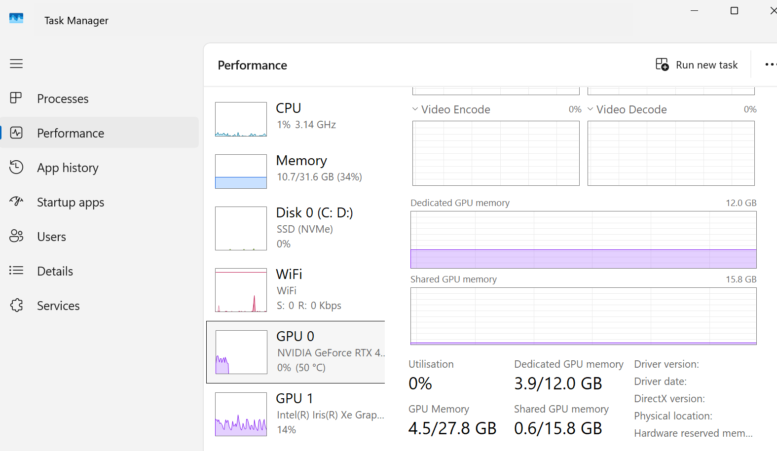 When I turn off video, nVidia GPU0 Dedicated GPU Memory stays at 4.8gb.
