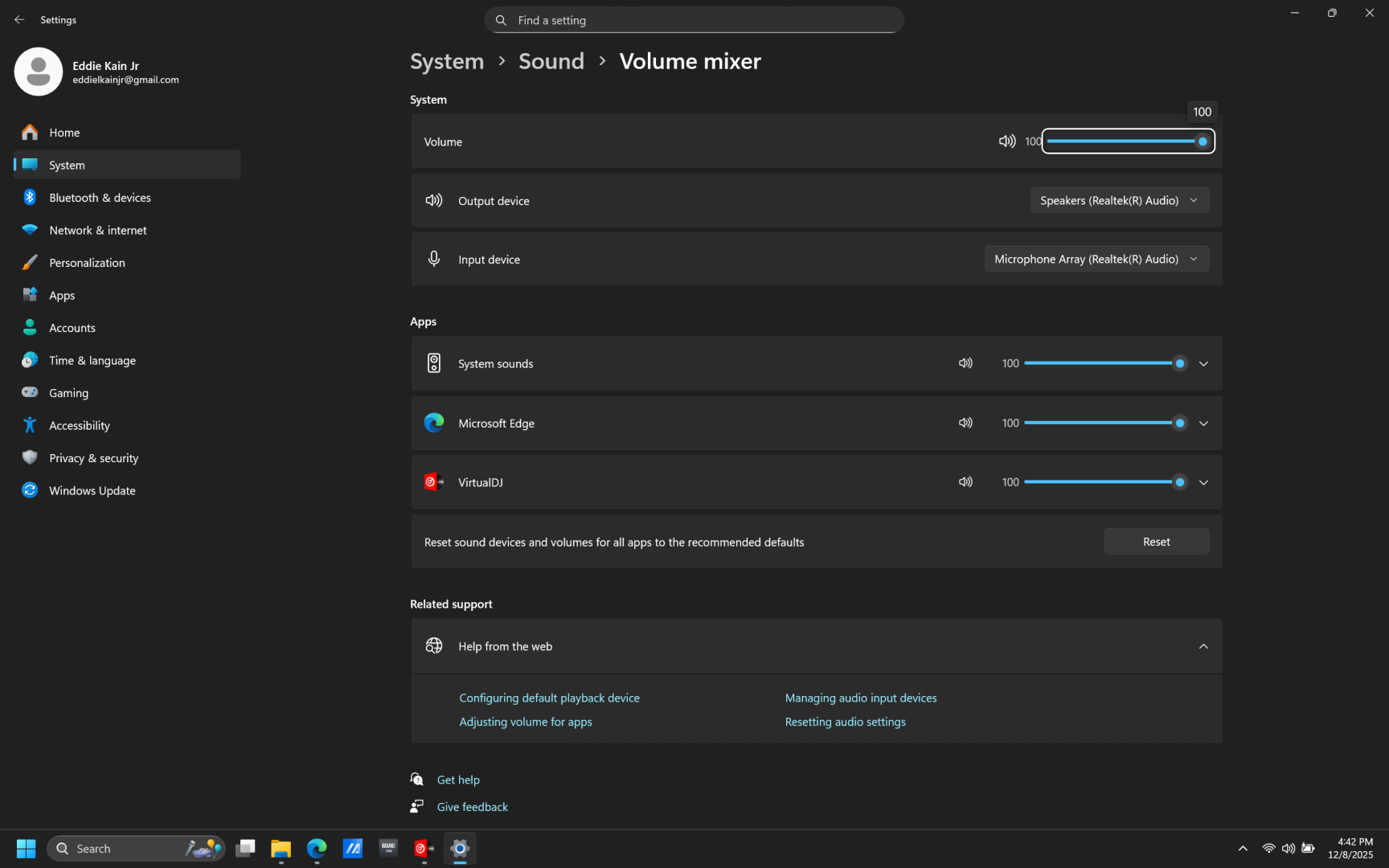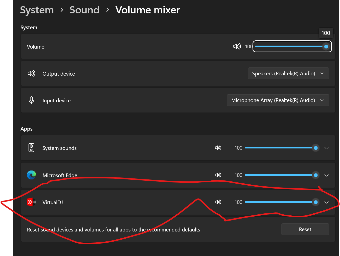 That was a screenshot of one of the many things I tried. Since then I removed the input altogether and still nothing. Now it doesnt even give me the "failure" message. Still no sound. I opened the sound settings and it shows virtual dj there but still no sound.