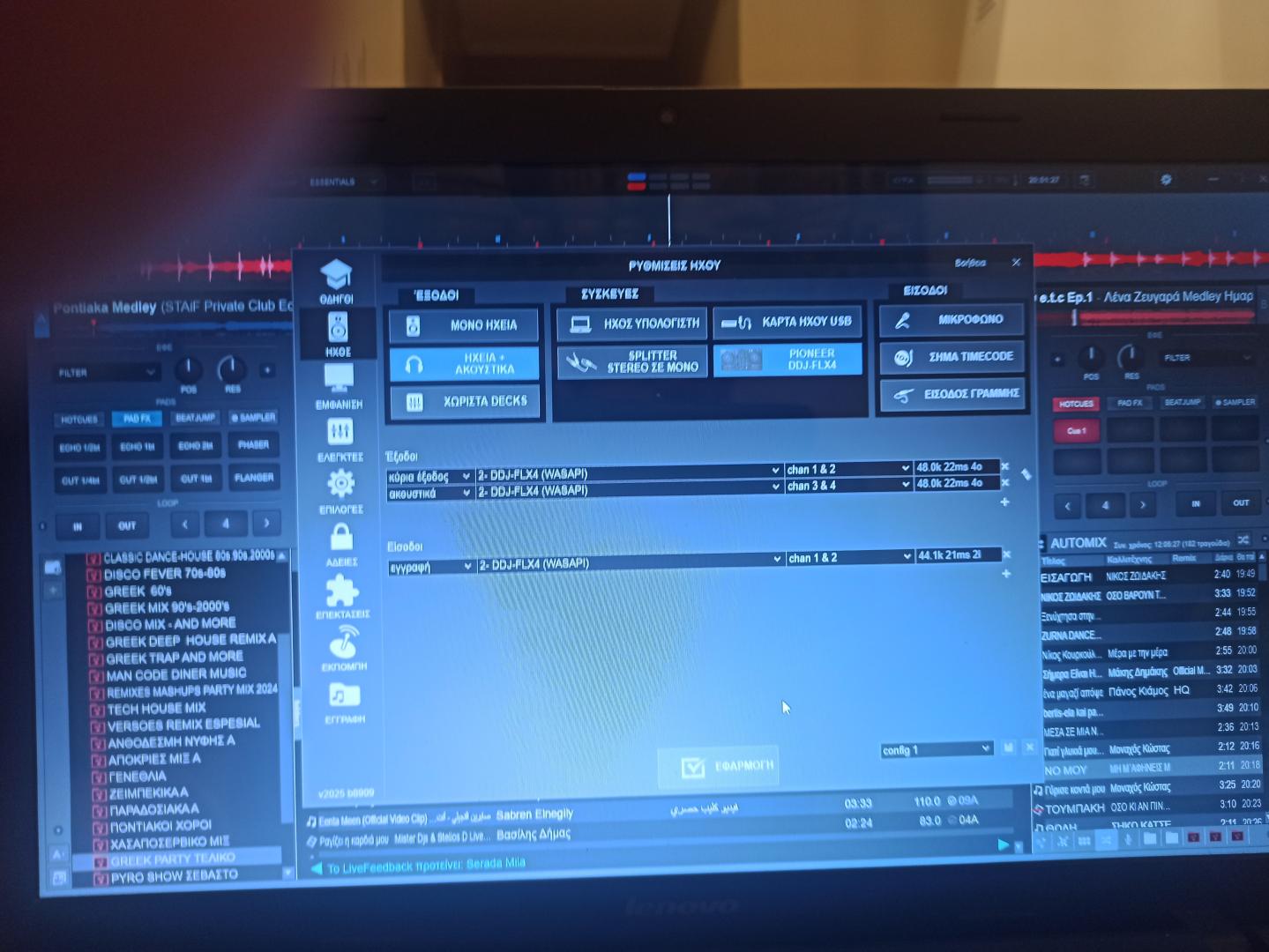 Να ρωτησω κατι,εχω παρει την αδεια home plus για τον νεο μου controller pioneer ddj flx4 και στις ρυθμισεις ηχου στο εικονιο καρτα ηχου usb στα ακουστικα εμφανιζει την παλια καρτα ηχου απο τον προηγουμενο controller pioneer wego3 πρεπει να επιλεγω τον νεο controller οταν το ανοιγω ξανα,δεν αποθηκευει τις νεες ρυθμισεις,αν καποιος γνωριζει θα εκτιμουσα την βοηθεια...