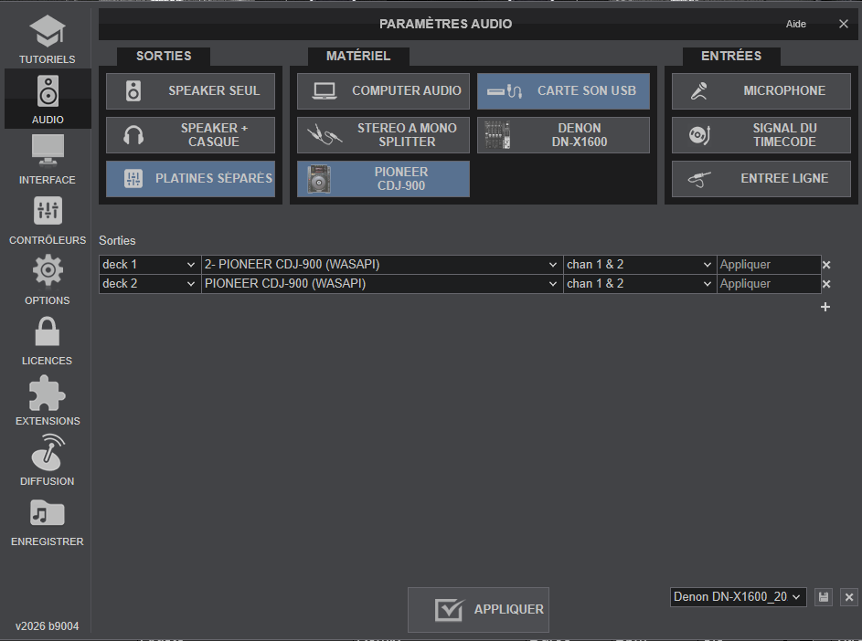 Quand j'ouvre VDJ j'ai soit ordinateur ou mixer cdj X-1600.