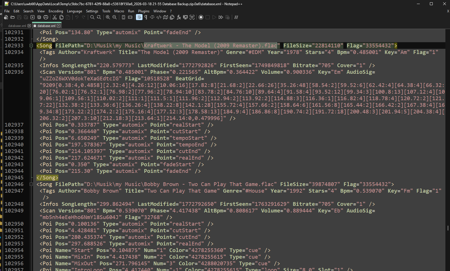 Das mit der Größe der Datenbank ist mir aufgefallen, weil ich gerade auf einen Mac M4 umsteige und zwischen Mac und Windows die Musik und database synchronisieren will.