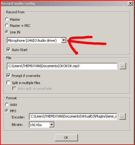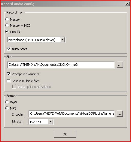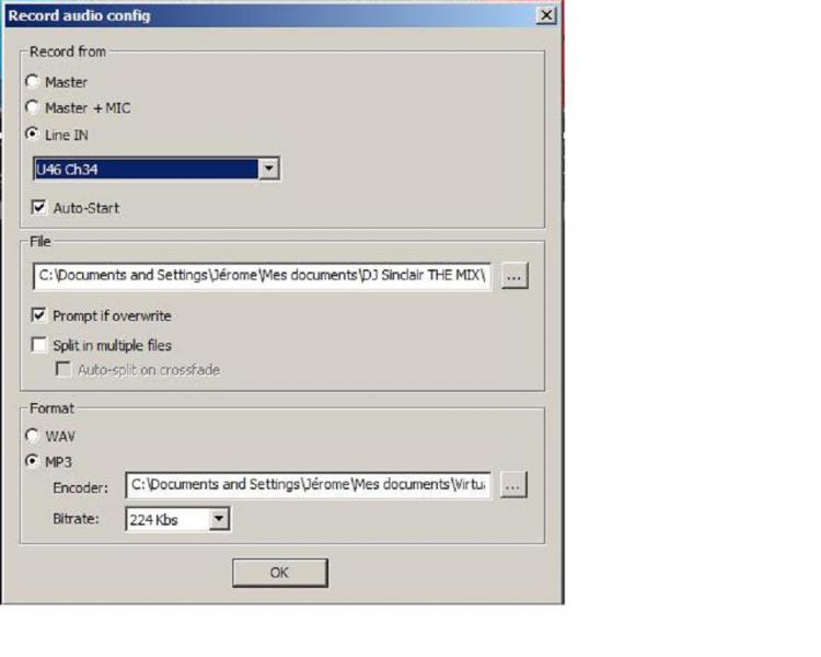 et sur virtual dj en enregistrement je selectionne LINE carte son U46DJ