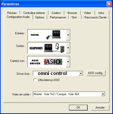 fait le reparamétrage de Vdj en selectionnant le driver Asio