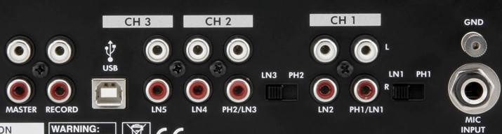 A l'arriere de la Gemini tu as LN1, LN2, LN3, LN4 ET LN5 se sont des entrées line pour LN et LN3 vérifie que le commutateur noir a l'arriere soit sur la position LN1 et LN3 si tu utilises ces entrées !