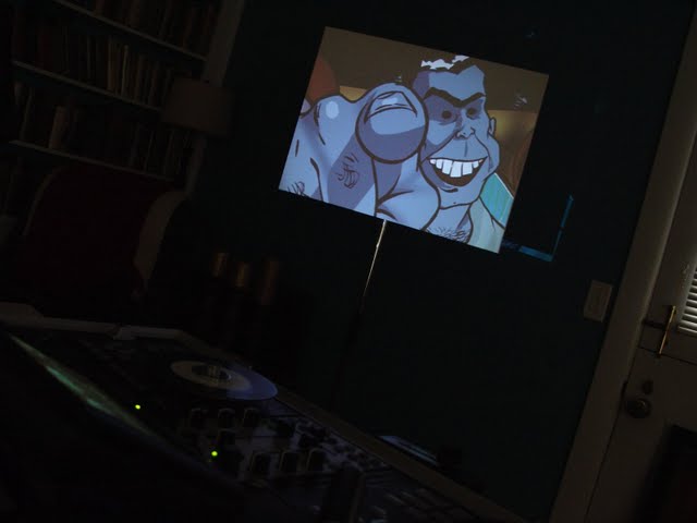 At the club their projector is hanging from the ceiling with a pull down screen in front (much better idea). I hooked up their new LCD TVs along with the projector, and now the projector is looking a little washed out. But it is cool that all 4 devices are showing my video programming. Now when I play the Obama/McCanin/Palin dance off...more people turn their attention to the video and have a laugh.