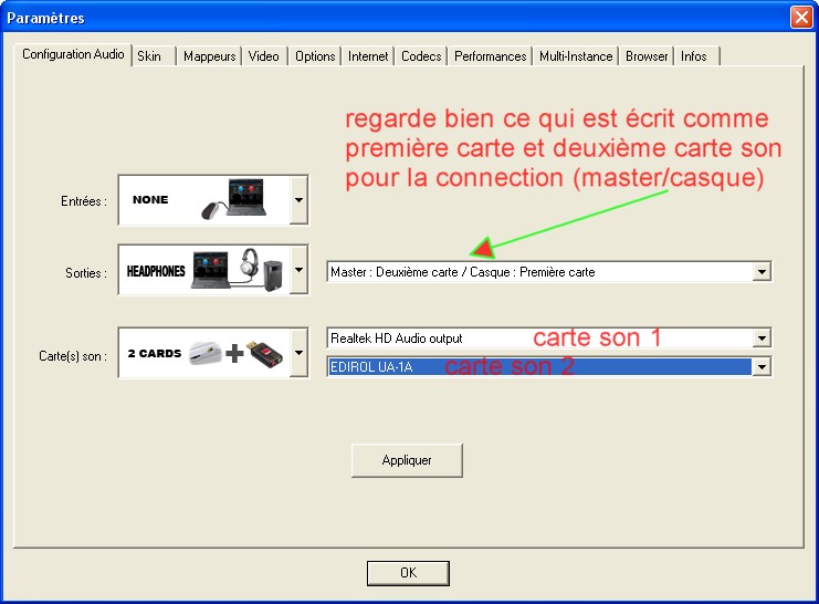 Moi J'ai vraiment besoin d'aide SVP. j'ai acheté une carte de son du nom de M-Audio - fast track pro et je cherche comment faire la pré-écoute des 2 cotés. Quand j'écoute la musique de gauche j'enttend les 2 musique et quand la musique de droite joue, j'enttend seulement la musique de droite et dans configuration je croyais avoir choisi les bon iteme mais rien ne fonctionne et il arrive que sa bogue.