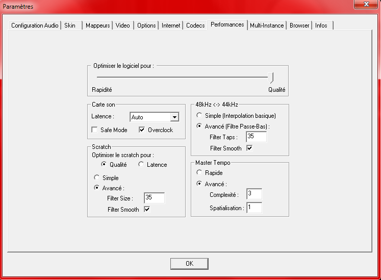 Je viens de refaire un essai,ca deconnait grave au chargement de la 2 eme zique avec le curseur mis sur qualité.