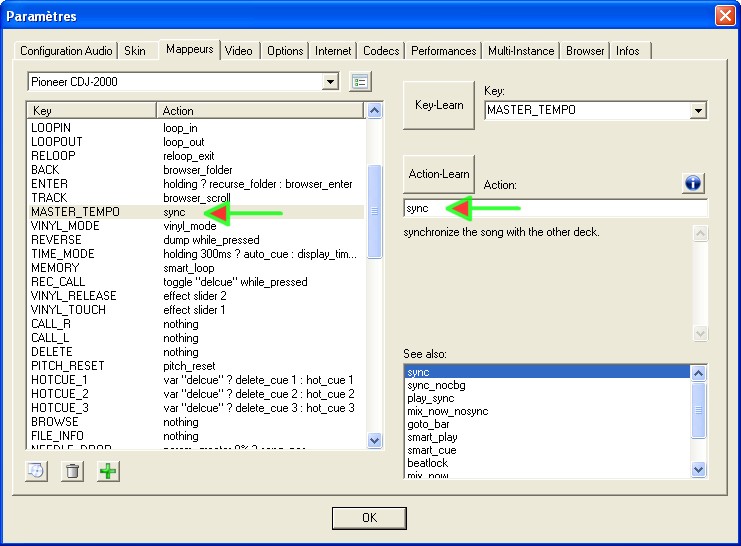 Et là tu pourras activé Smart_loop ou le master_tempo sur ta Skin celon le bouton choisi.