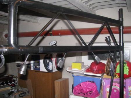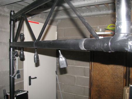Si vous n'utilisez pas de dmx, je vous aurai conseillé de mettre une plinthe en bois ou une planche de 100mm de largeur, teinte en noire à la bombe avec des prises de ce type http://www.hellopro.fr/images/produit-2/2/0/3/prise-de-courant-16a-etanche-510302.jpg