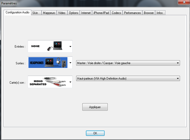 Je rappel quand même que le câble doit être STEREO JACK du côté de l\'ordinateur et ensuite avoir une séparation des signaux droite - gauche en 2 câbles MONO JACK (ou cinch ou rca cela fonctionne aussi) mais SURTOUT d\'un côté STEREO (côté carte son) et MONO à la sortie de ce câble avec un scindage en 2 !