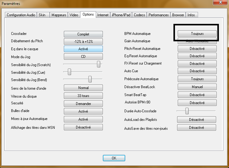 Va dans l'onglet (info) et réinitialise les réglages par défaut, puis désactive le BMP automatique.