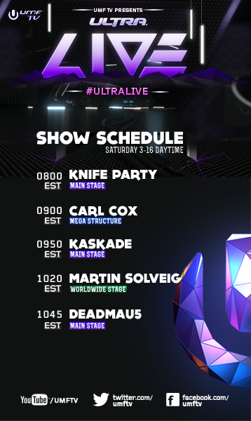 Live-Stream: http://youtube.de/umftv oder via http://ultramusicfestival.com