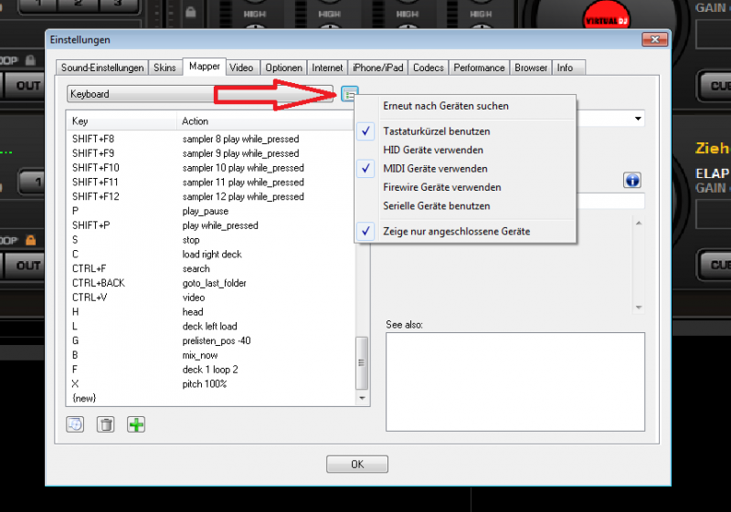 Und wie schon geschrieben brauchst du kein Mapping, da diese schon in VDJ eingebaut ist.