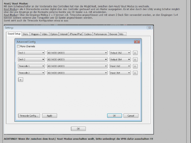 Du kannst aber die VMS auch im 8 Out Modus mit Timecode betreiben. Dann brauchst du zwischen TT und VMS eben noch eine zusätzliche Soundkarte die das Phonosignal der TT in ein Line Signal wandelt.