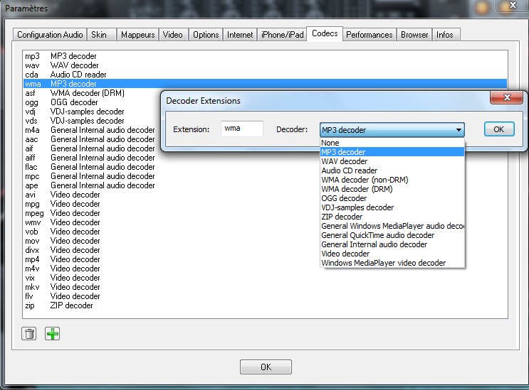 Essai de changer le décoder: double clic sur WMA et tu met sur mp3 décoder aulieu de WMA(DRM)