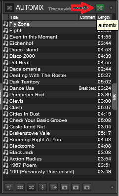 Once you have tracks in automix list click the arrowed button.