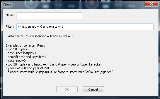 Gah, I had to reinstall VDJ7 after a reformat of my lappy, and re-encountering this same issue ... but for some reason the line code you gave me, I cant figure out how to get that working as you described here, and I could have sworn I was able to get it done last time :/. " -> isscanned = 0 and exists = 1" to filter folder right? Im getting this ...