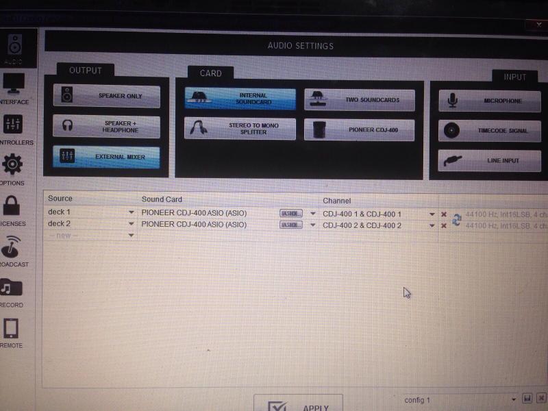 it stays on the cdj 400 pic only if the sound card config is on wasapi if i change it to ASIO it goes back the the internal sound card...