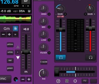 When I load a song the EQ level shows 2 levels one is bright and the other is lighter faded within the same circle, however with a slight nudge of the corresponding buttons the gain jumps to chosen preset level. Now the correct and only level is displayed after the nudge.