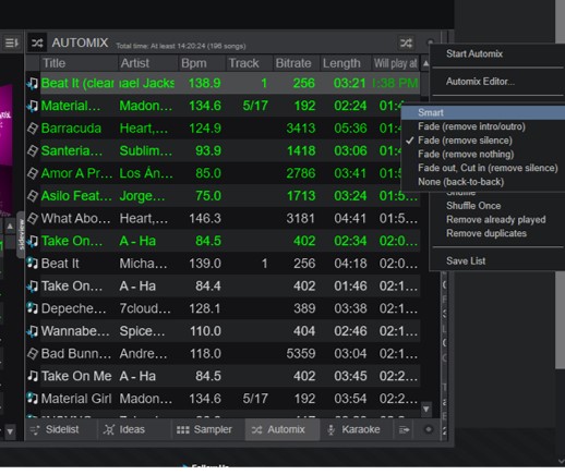 Hi, is there a way to fade to next song when I play songs in AUTOMIX?