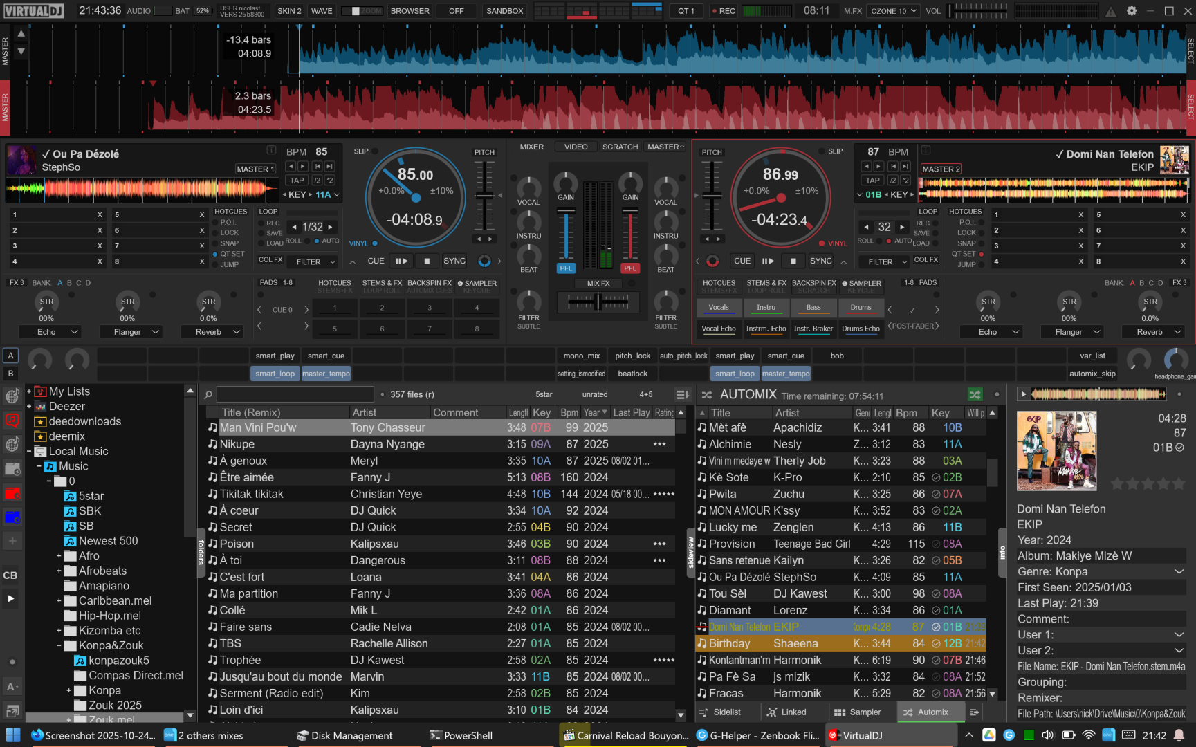 However, VDJ is remarkable inconsistent at actually detecting the stems. It's very strange, most tracks just work fine, then some won't detect as stems