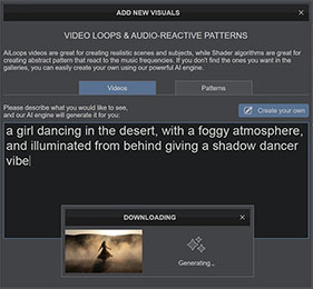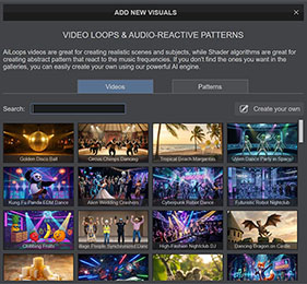 You can use traditional audio-reactive mesmerizing patterns (Shaders), that can now be generated by the AI engine from simple descriptive prompts.