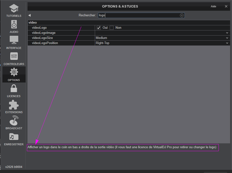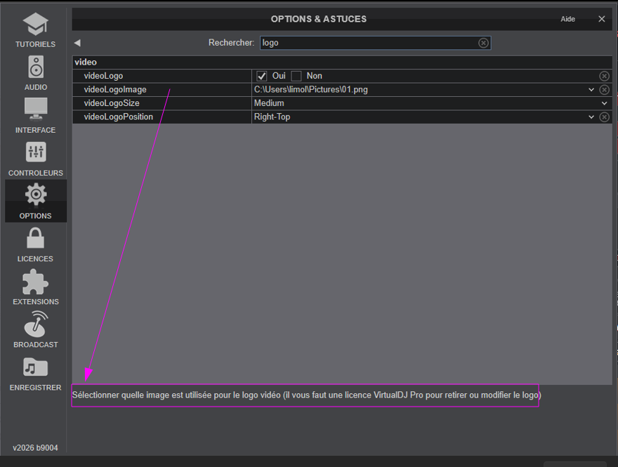 Il faut avoir une licence pour remplacer le logo par défaut « Virtual DJ » par ton propre logo.