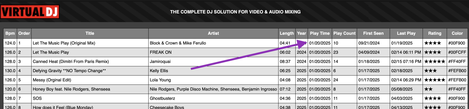 But if you Export that playlist to an HTML, CVS, or TXT file, at some point in the past, VDJ will only output the DATE in that field, not the actual time the file was played.