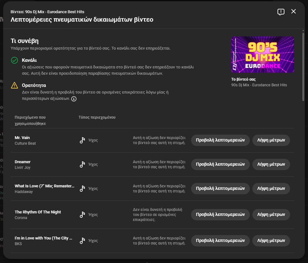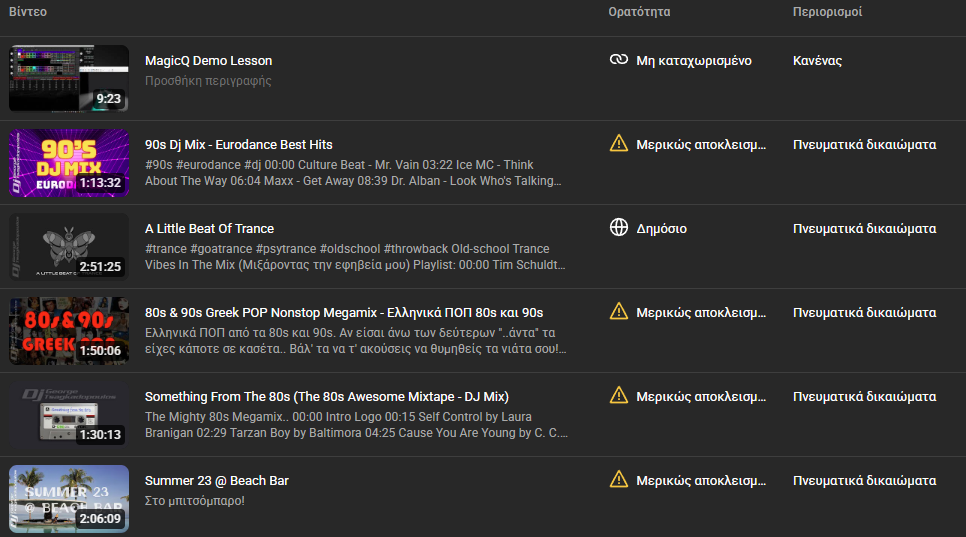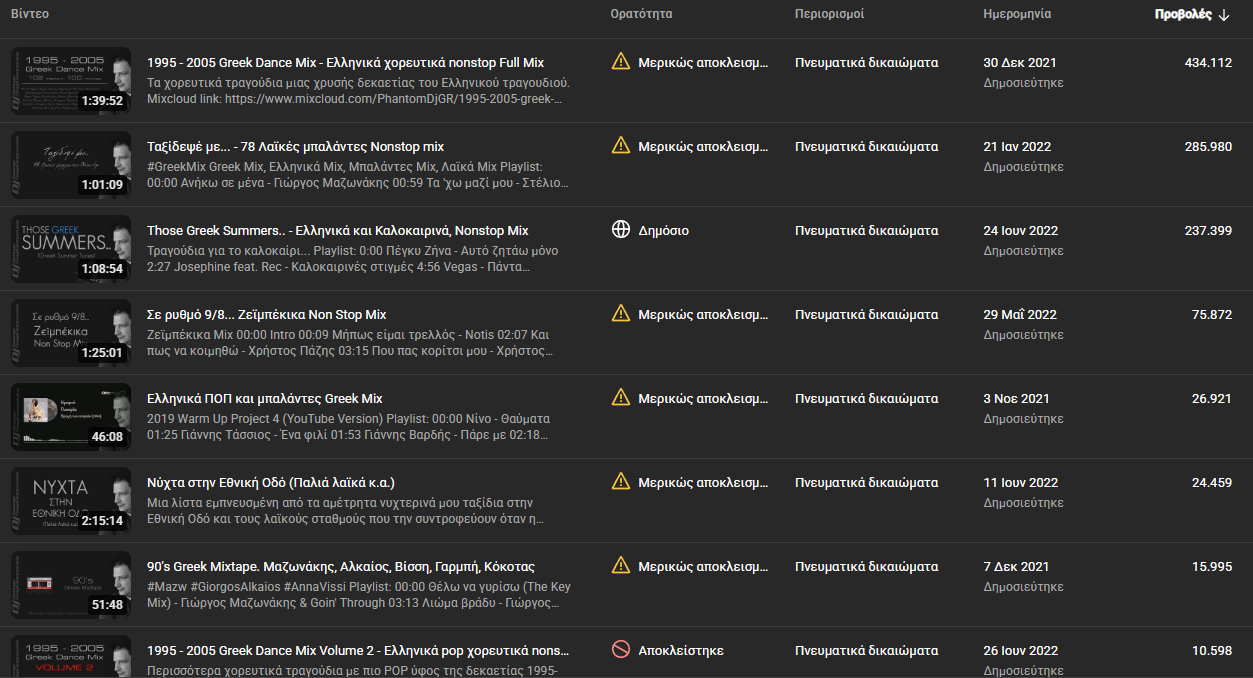 Αυτός είναι και ο λόγος που δεν έχω ανεβάσει mix με πιο "μοντέρνα" κομμάτια στο YouTube και ειδικά κάποιο από τα δίωρα που γράφω κάθε εβδομάδα για το ραδιόφωνο. Επειδή παίζω και πολλά φρέσκα hits το βίντεο καταλήγει πάντα να είναι blocked.