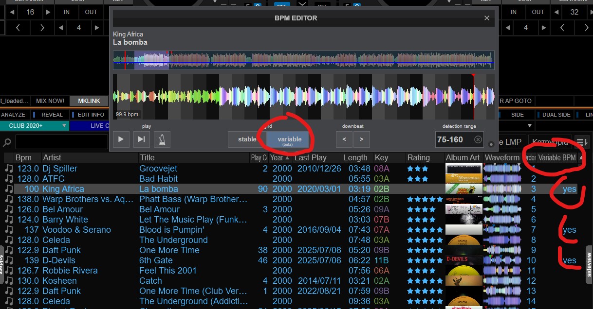 In the future it will suggest and/or switch to variable BPM automatically based on how much variation exists on a track's BPM, but not for now!