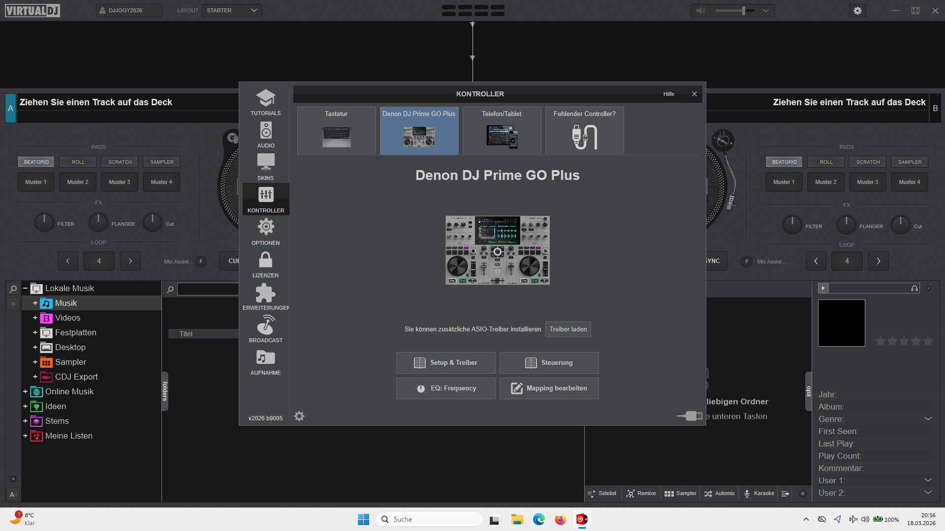Hallo alle zusammen. Ich habe seit gestern den neurn Denon GO Plus. Ich arbeite seit 10 Jahren mit Serato und dem Denon MC 6000 MKII. Nun habe ich mir für den Prime Go Plus Virtual DJ gekauft. Ich bekomme keine Verbindung mit der Software und dem Controller. Gruß Jogy
