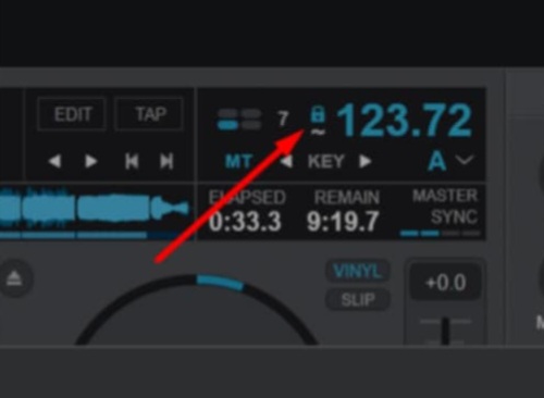 (without the track locked, one can see the BPMs displayed on the deck's platter as one plays the track, locking at any of those BPMs will adjust the entire track to that BPM that at that position, it is pressed/locked)