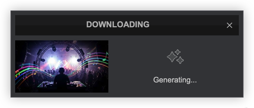 The process will go 3 phases: Thinking, Generating (which will display a thumbnail of your creation), and Downloading.